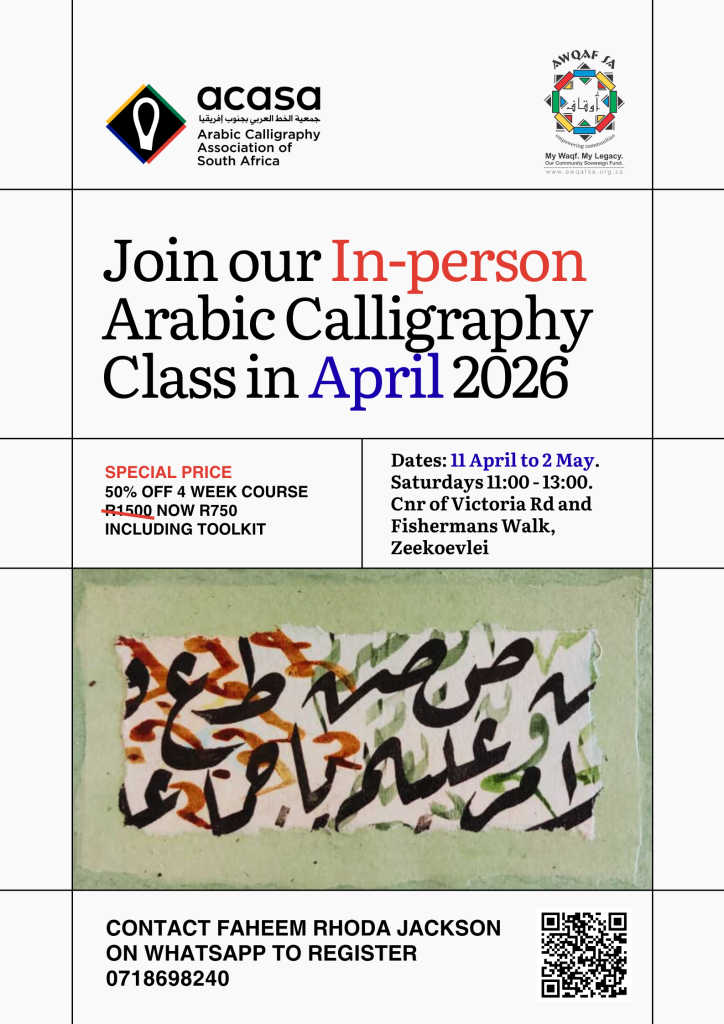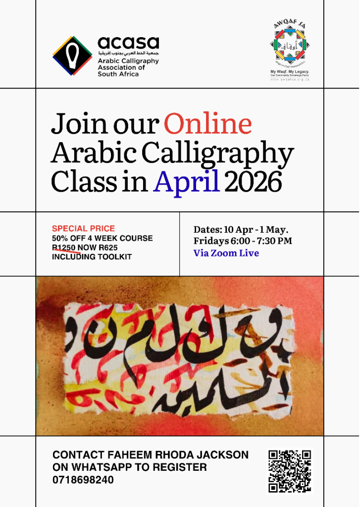 Date: 11 Apr to 2 May, at Zeekoevlei Islamic Centre.